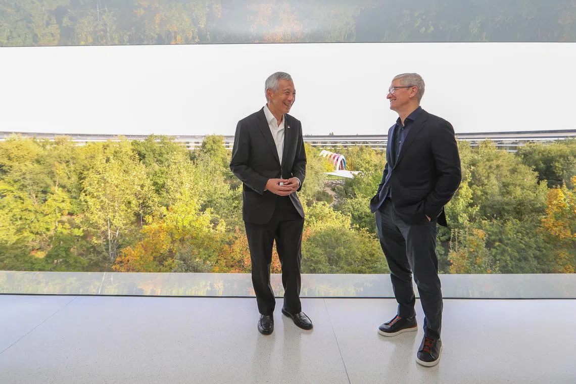At Apple Park in Cupertino, PM Lee and Apple CEO Tim Cook exchanged views and reiterated the good partnership that Apple has with Singapore, the Prime Minister’s Office (PMO) said.
