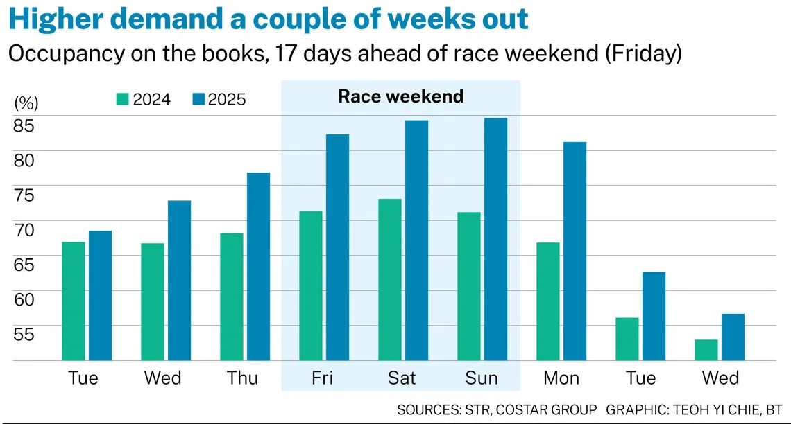This year, 17 days before the race, occupancy for the three-day weekend hovered above 80 per cent, STR data showed. In 2024, the figure was closer to 70 per cent.