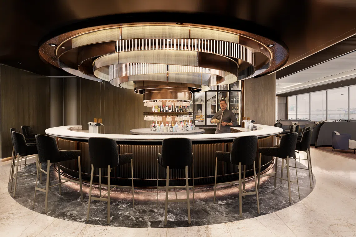 The new first-class SilverKris lounge will offer more space, increased capacity and higher ceilings. The renovated bar will feature barista services in the mornings, while live cooking stations will serve Singaporean, Asian and Western cuisine. The self-service buffet will also be expanded to match the offerings of the SilverKris lounge in Terminal 3.