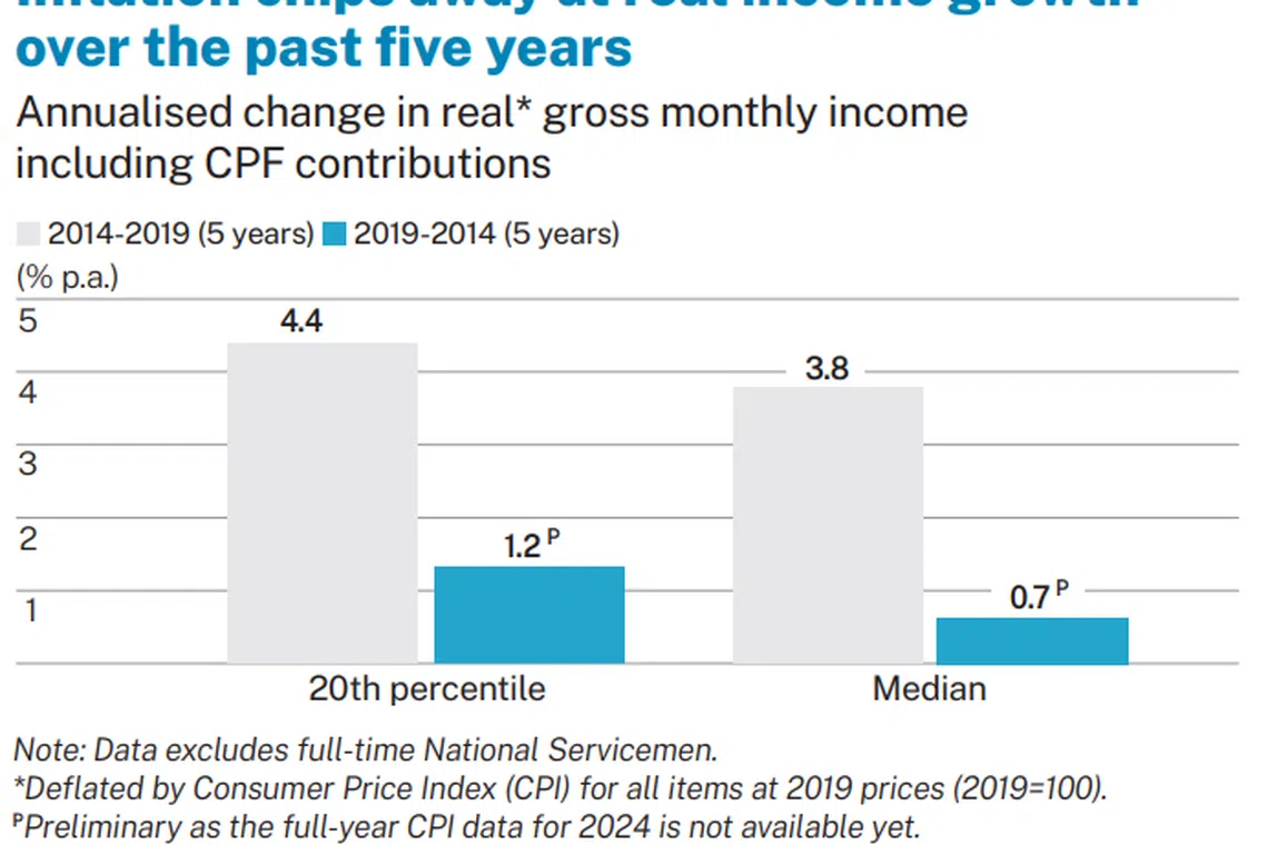 Singapore’s real incomes rebound in 2024 as inflation eases, but real wage growth for last 5 years still low