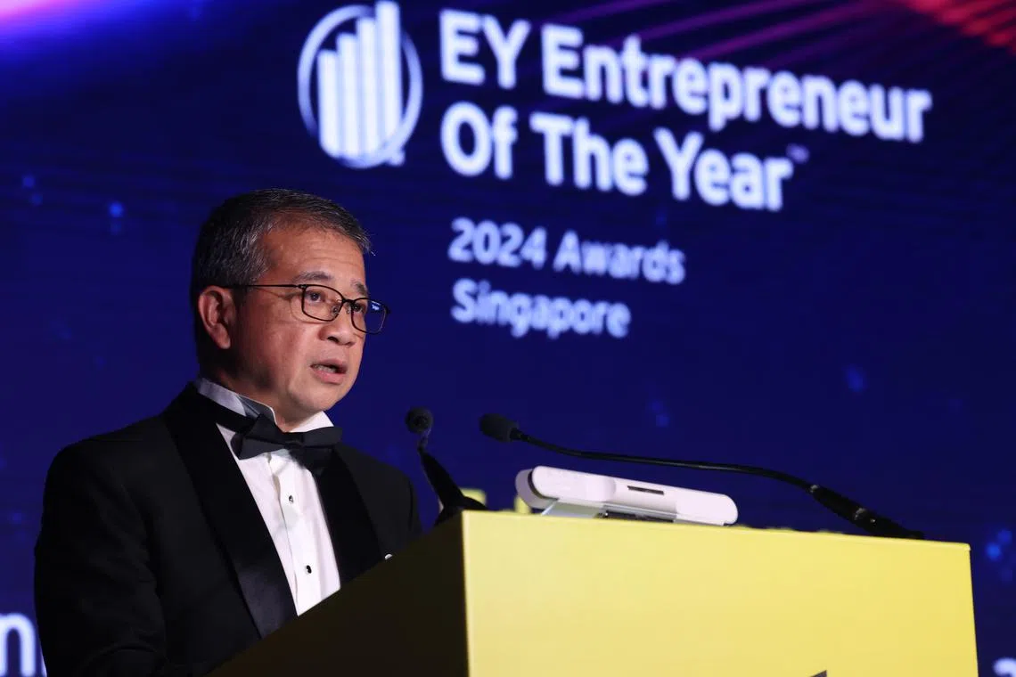 Speaking at the awards ceremony held at the Ritz-Carlton hotel on Monday evening (Nov 18), guest of honour Minister for Culture, Community and Youth and Second Minister for Law Edwin Tong highlighted the important role entrepreneurs play in society.