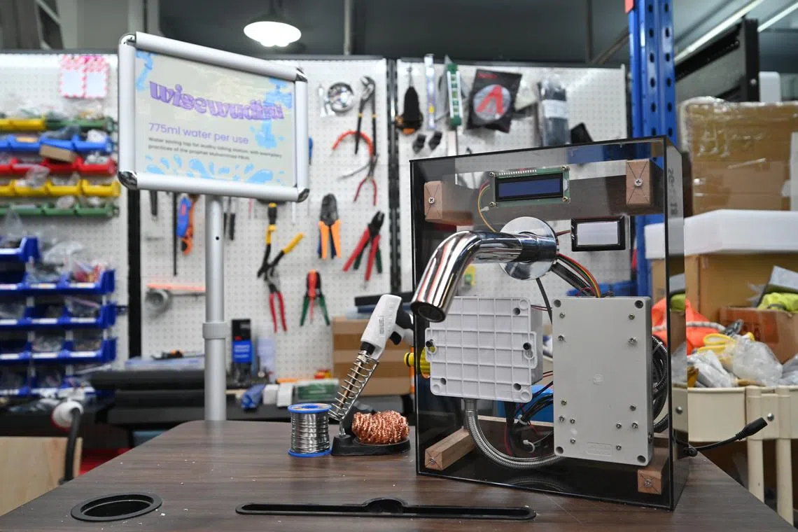 The students found that each individual used 5 to 6 litres. Their solution, tested at Masjid Ahmad Ibrahim in Sembawang, dispenses just 775 millilitres, in line with Islamic teachings on mindful water use.