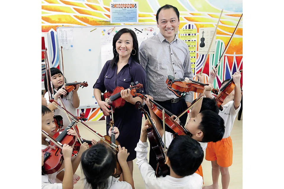 Over the years, both Mr Teoh and Ms Chong sensed the increased appetite of parents for more holistic developments for their children. Responding to this change, the couple decided to inject music into their Safari House pre-schools through a string ensemble programme. They experimented with having their students from Nursery 1 to Kindergarten 2 learn to read musical notes and play the violin. After a successful pilot programme, the move is now implemented in all Safari House pre-schools, beginning this year.