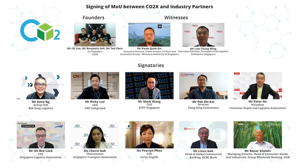 SUSTAINABILITY-linked company CO2X, a joint venture by 3 home-grown technology companies - Ascent Solutions, Evercomm Singapore and Hashstacs - signed a memorandum of understanding (MOU) with industry and association leaders from the transport and logistics, as well as finance sectors, on Friday (Oct 15).