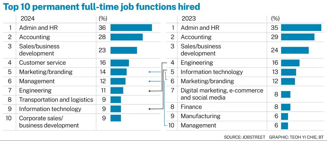 The report noted that the top three job functions for 88 per cent of companies hired in 2024 remained consistent with those in 2023.