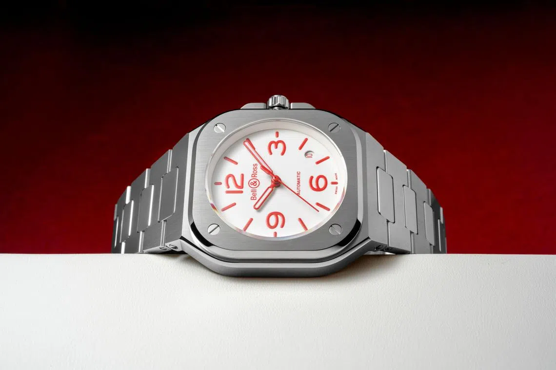 This special edition marks the first appearance of a Full Lum dial in the brand’s urban-chic BR 05 collection – and does so with a red-and-white palette that proudly salutes the Lion City.