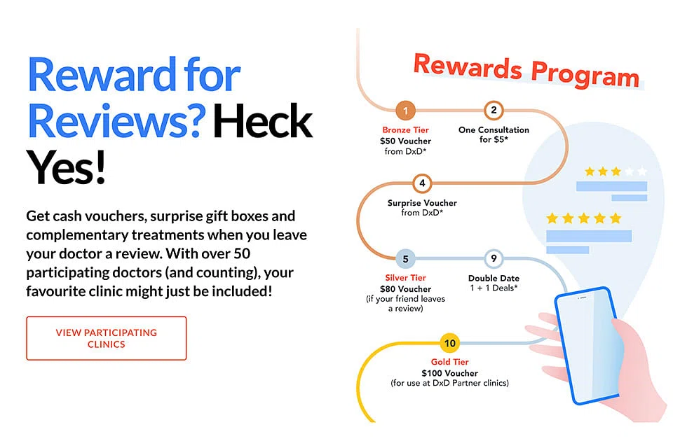 A link on DoctorxDentist's Instagram page, last seen by BT on Nov 17, 2020, led to a "rewards programme" that incentivises patients to leave reviews for doctors. Patients who leave reviews for doctors stood to receive cash vouchers, gifts and complimentary treatments. The more reviews patients wrote, the higher the value of rewards they would get, it promised. However, it is unclear whether any patients or clinics took part in the programme.