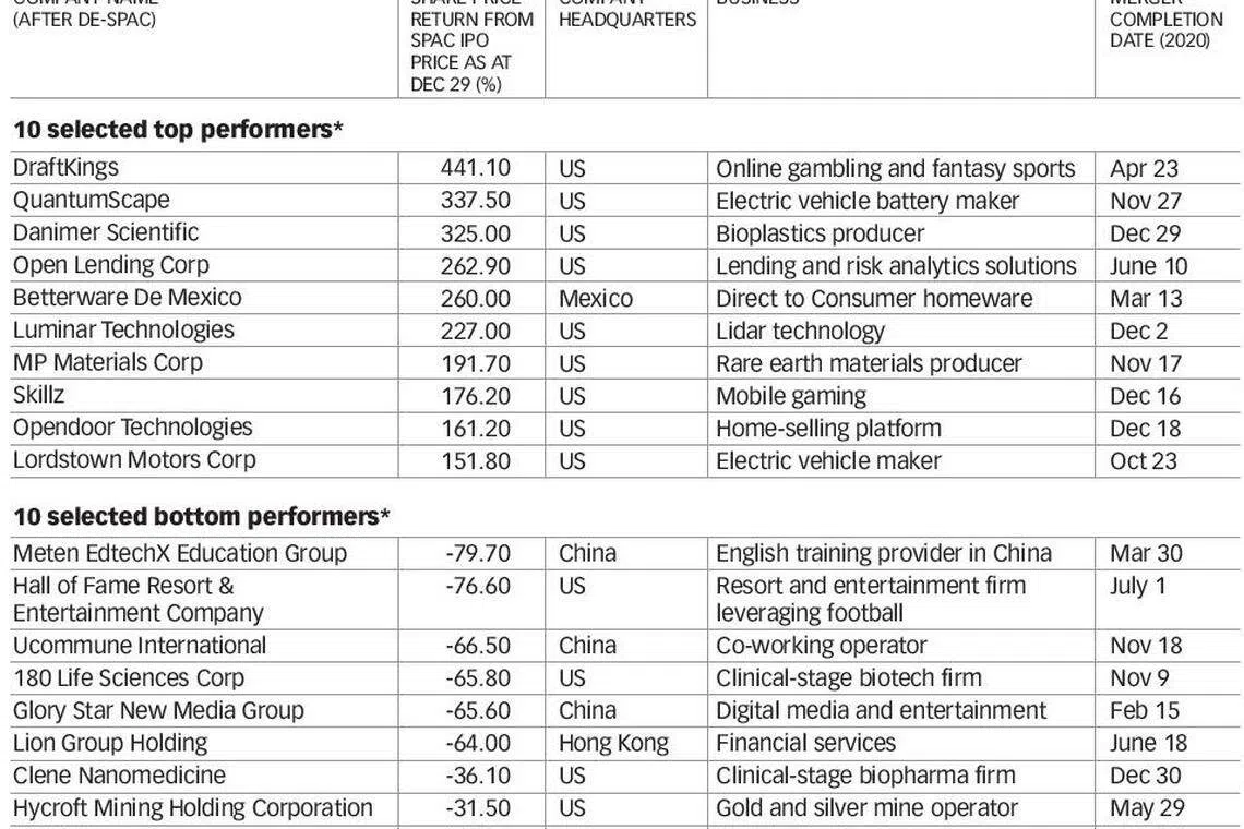 How South-east Asia's tech firms, particularly the unicorns, react to the SPAC suitors will be keenly watched. This is especially since investor sentiment towards mergers with US-listed SPACs completed last year varies greatly between the outperformers and underperformers (see table on Page 2).