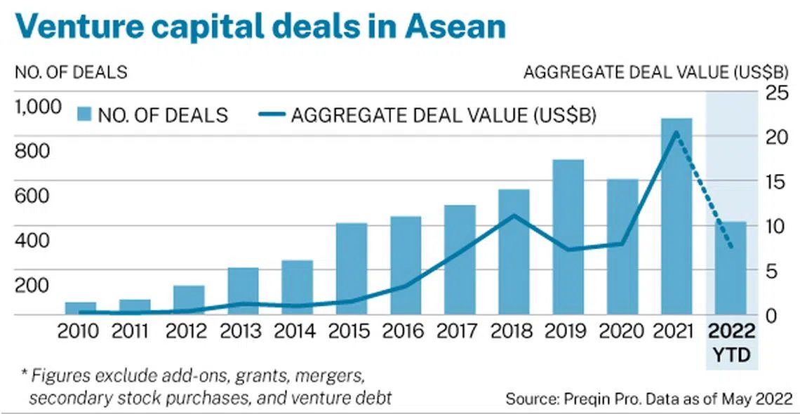 VC deals in Asean at record US$20b high in 2021; uncertainty over exits in 2022