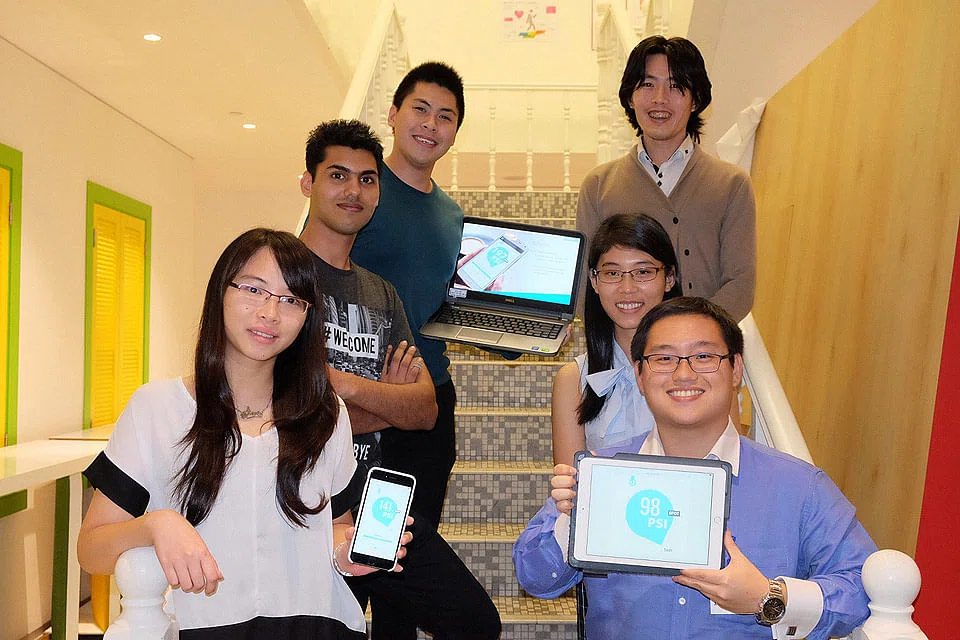 Web designer Kexin Yu, 24, Web developer Ravi Gandhi, 26, and interactive design intern Quah Kok Kiong, 24, and their partners created Hazero, an application which provides location-based Pollutant Standards Index (PSI) readings and personalised activity recommendations.