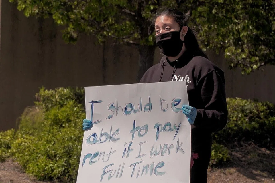 On May 1, she joined a protest in front of an Amazon warehouse in Richmond, California, wearing a black mask and holding a sign saying, "I should be able to pay rent if I work full time."