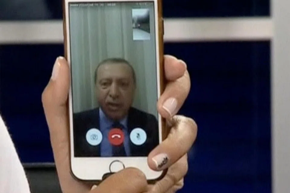 Turkish President Tayyip Erdogan, an avowed enemy of social media who has frequently made Twitter and Facebook a target, addressed the country via a FaceTime video call that was shown on TV.