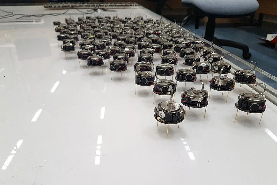 AT THE Bristol Robotics Laboratory in southwest England, dozens of tiny metal machines were poised to dance over a shiny white surface in "swarming" experiments to track how they organise themselves and work together.