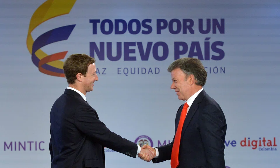 After meeting with Colombian President Juan Manuel Santos, Zuckerberg signed an agreement with the government to offer the Internet.org app for free to subscribers of the Tigo mobile phone service.
