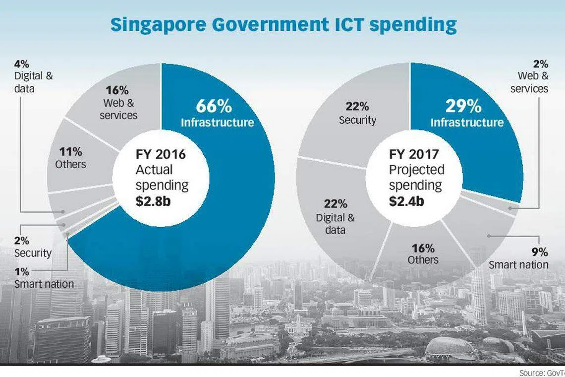 Commenting on this, Ms Poh said a large component of ICT expenditure in fiscal 2016 was to build the foundation for a Smart Nation and digital government. "This is basic infrastructure that we have to lay out to ensure that there is capacity for the growth of Smart Nation applications. In fiscal 2017, the government intends to spend a larger proportion on digital and data, cybersecurity and Smart Nation applications."