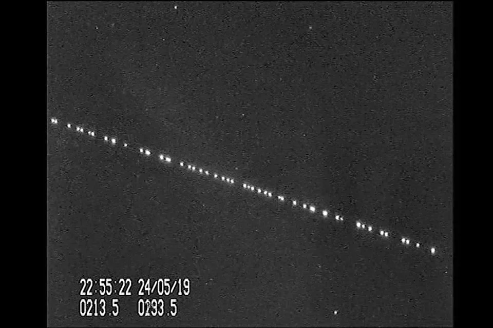 IT LOOKED like a scene from a sci-fi blockbuster: An astronomer in the Netherlands captured footage of a train of brightly-lit SpaceX satellites ascending through the night sky this weekend, stunning space enthusiasts across the globe.