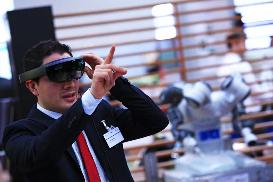 ONE recent morning, Stephanie Rosenburg arrived at work to find her PC monitor had vanished. She looked around the office and saw that members of her team were wearing headsets with see-through visors and grabbing invisible objects with their hands.