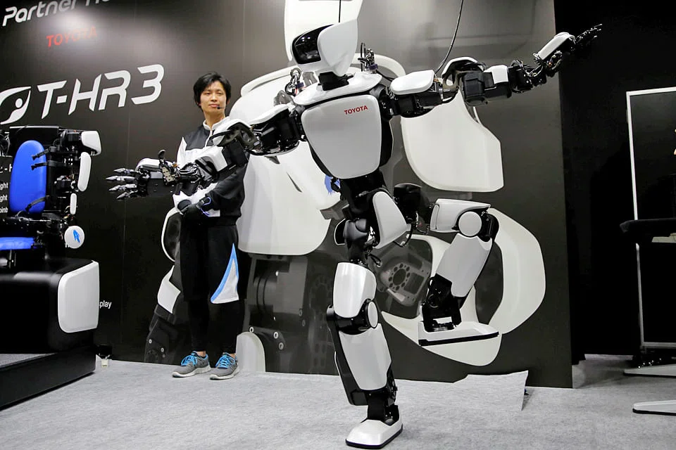 JAPANESE auto giant Toyota on Wednesday showcased a humanoid robot that can mirror its user's movements, a product it says has uses as varied as elderly care and disaster response.