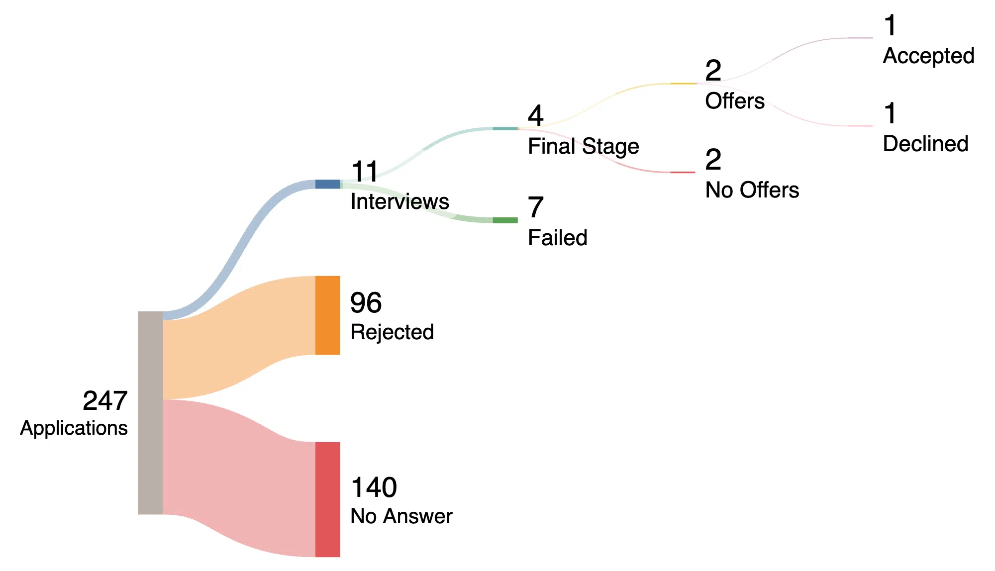 “Rejections are the norm,” says Aaron, who charted out how his job hunt went.