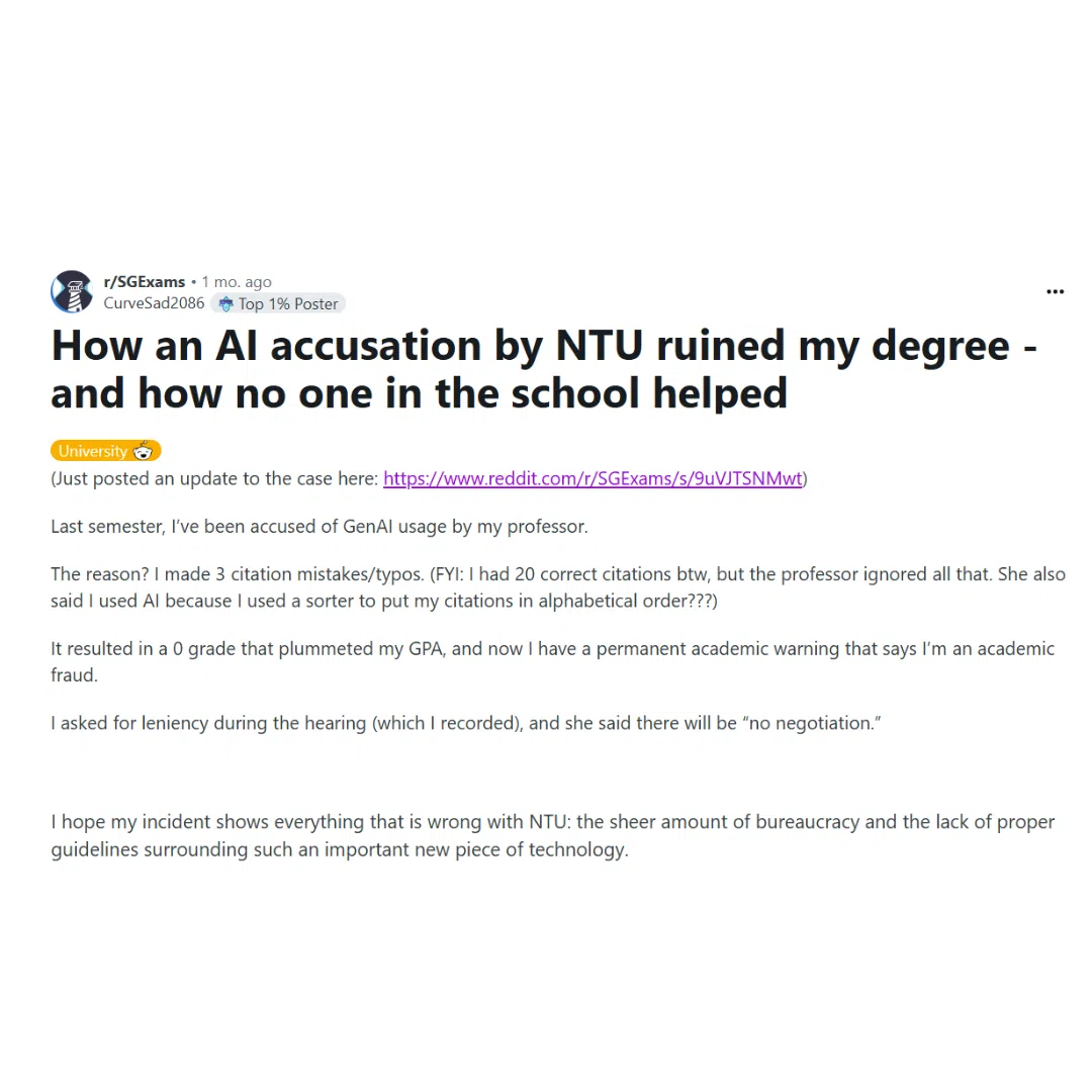 While this case highlights issues with the technology itself, students also took to the internet to voice concerns over a lack of proper frameworks and AI literacy education in universities.