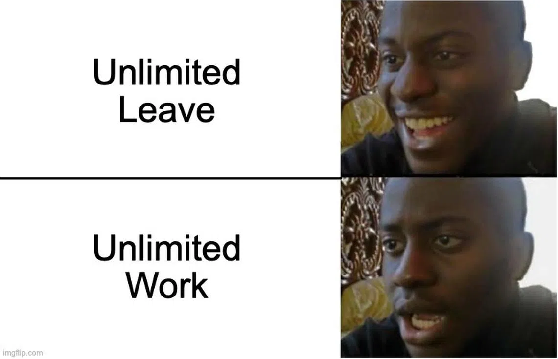- Bad managers will still find a way to manipulate the policy, either by guilt-tripping employees, dangling the possibility of layoffs, or convincing staff to postpone their leave since there is no limit anyway