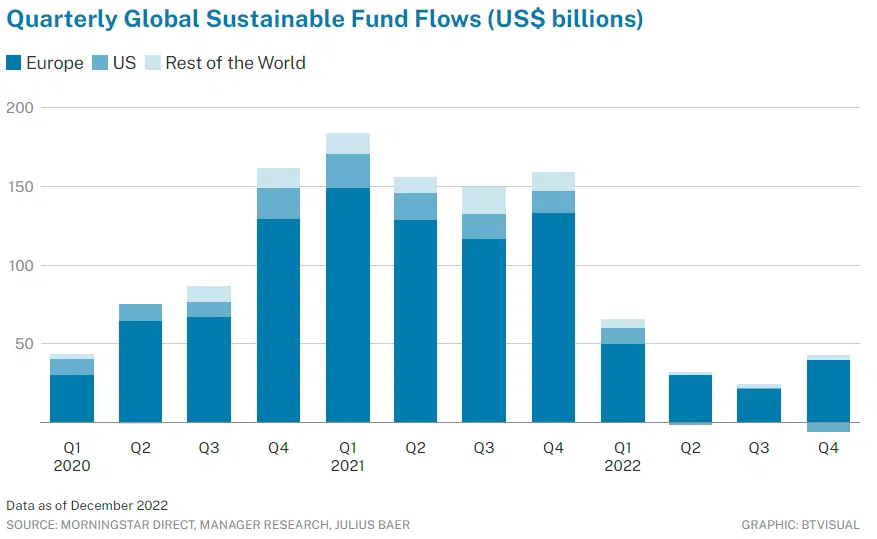 That is one reason for the remarkable growth in the amount of money flowing into sustainable investments over the years. It’s worth pointing out, though, that ESG-focused funds haven’t been too hot since 2022, in the face of the Russia-Ukraine war and this year’s banking turmoil.