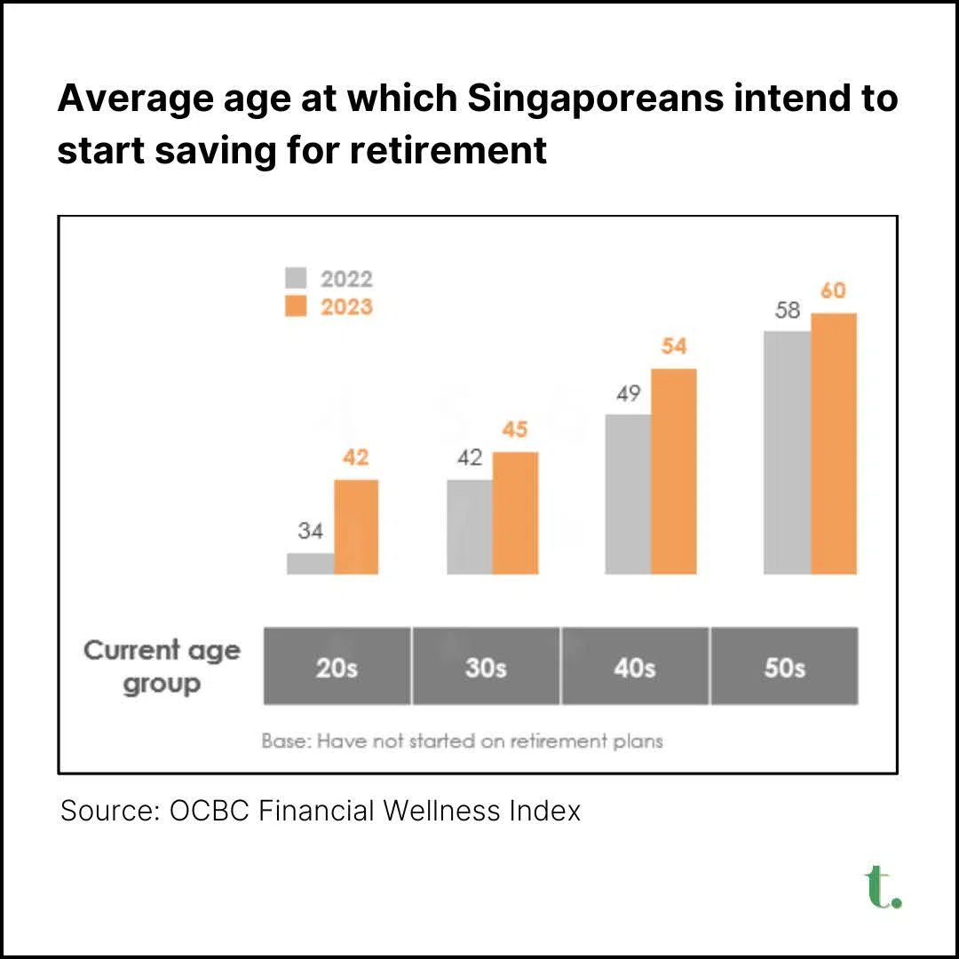 In an annual survey published late last year, the bank found that only 56 per cent of surveyed Singaporeans aged 60 to 65 are on track with their retirement plans. The age at which people intend to start planning for retirement has also been pushed back, even among older Singaporeans.