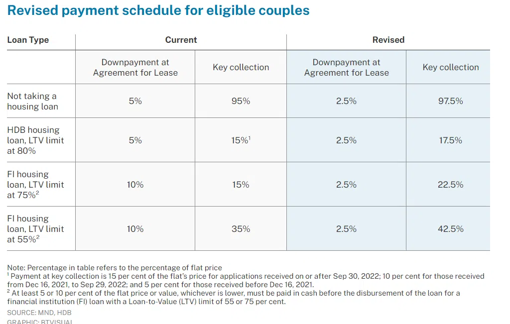 - Eligible young couples who book a BTO flat will only need to pay a reduced 2.5 per cent down payment