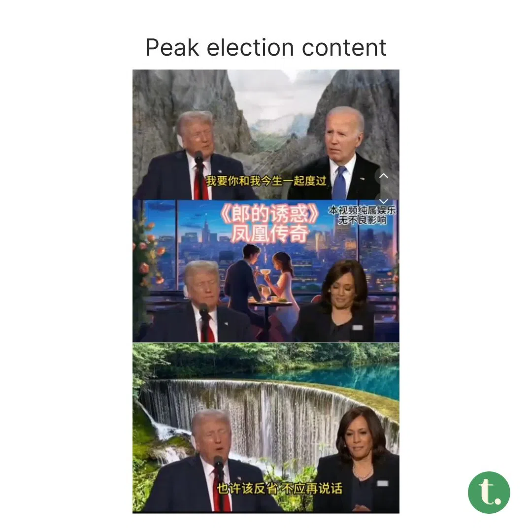 My bigger concern, though, is that post-election, my daily feed of AI-generated TikToks of Trump and Harris singing Mandopop duets may sadly come to an end š¢.