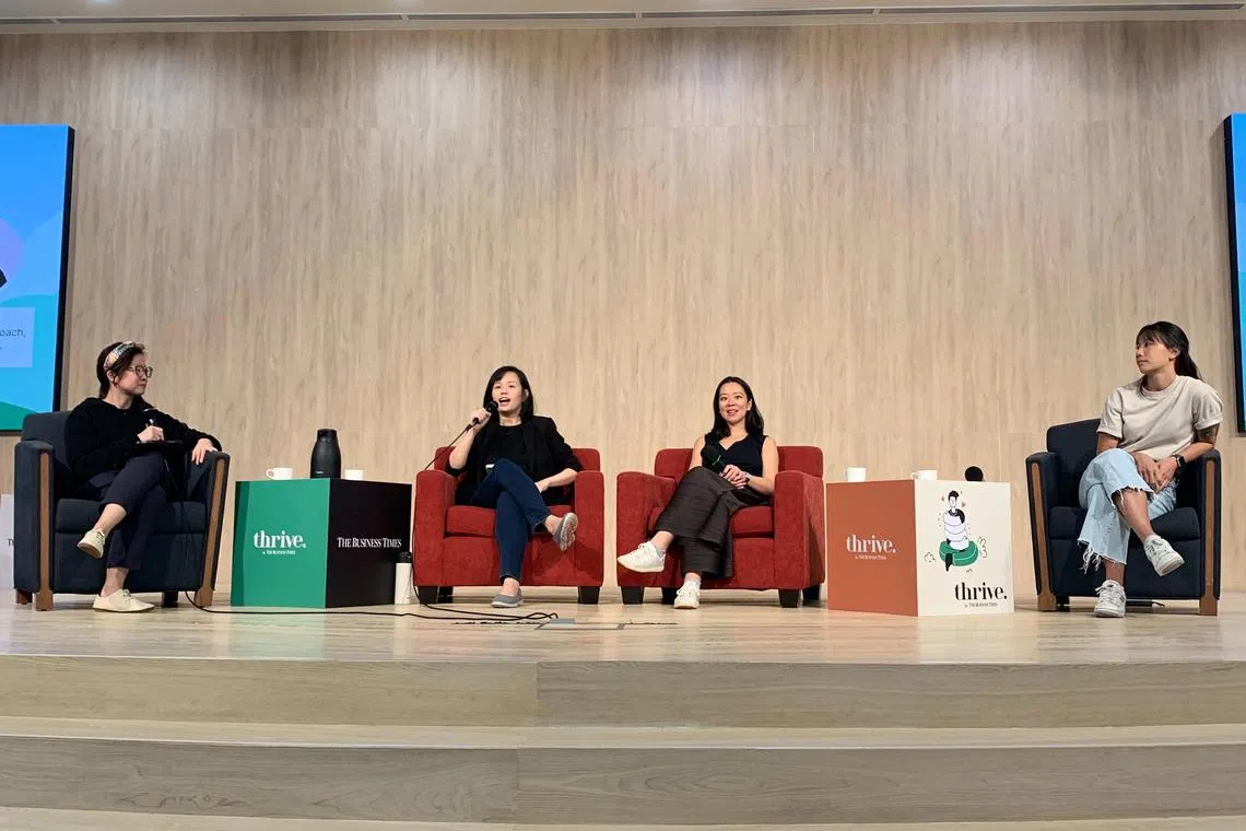 On the panel were Jennifer Ong, founder and career coach at Ctrl Alt Career; Joy Ong, senior lead counsellor and family therapist at InspireJoy; and Clara Nah, health and fitness coach and wellness lead at Tzu Chi Humanistic Centre. Thrive’s editor Vivien Shiao served as moderator for the panel discussion.