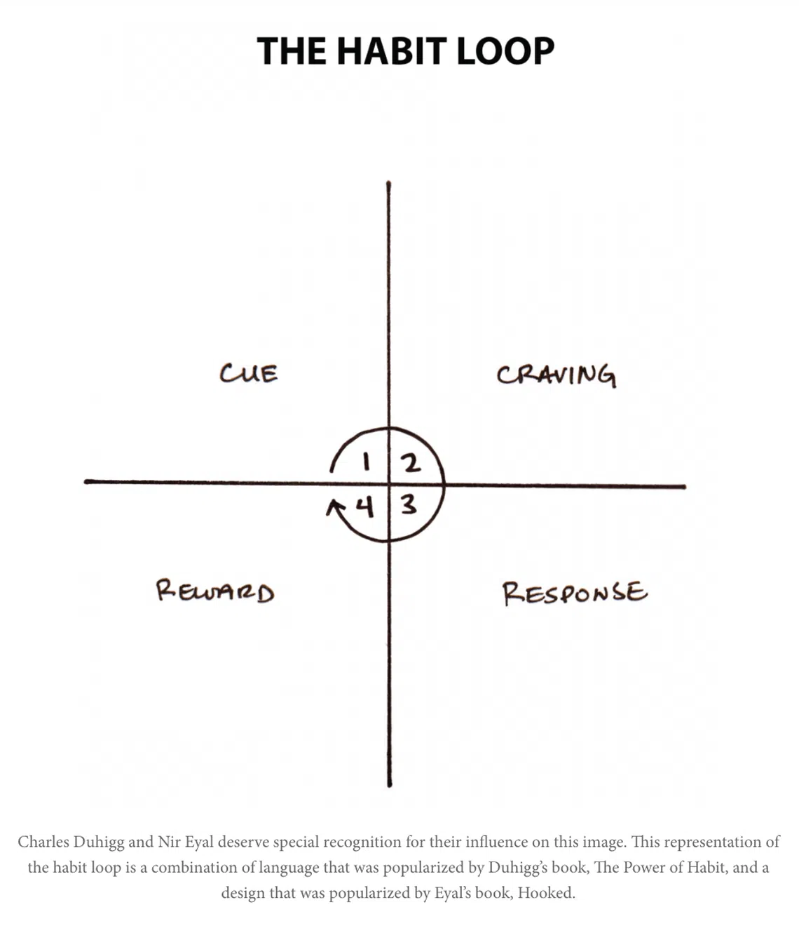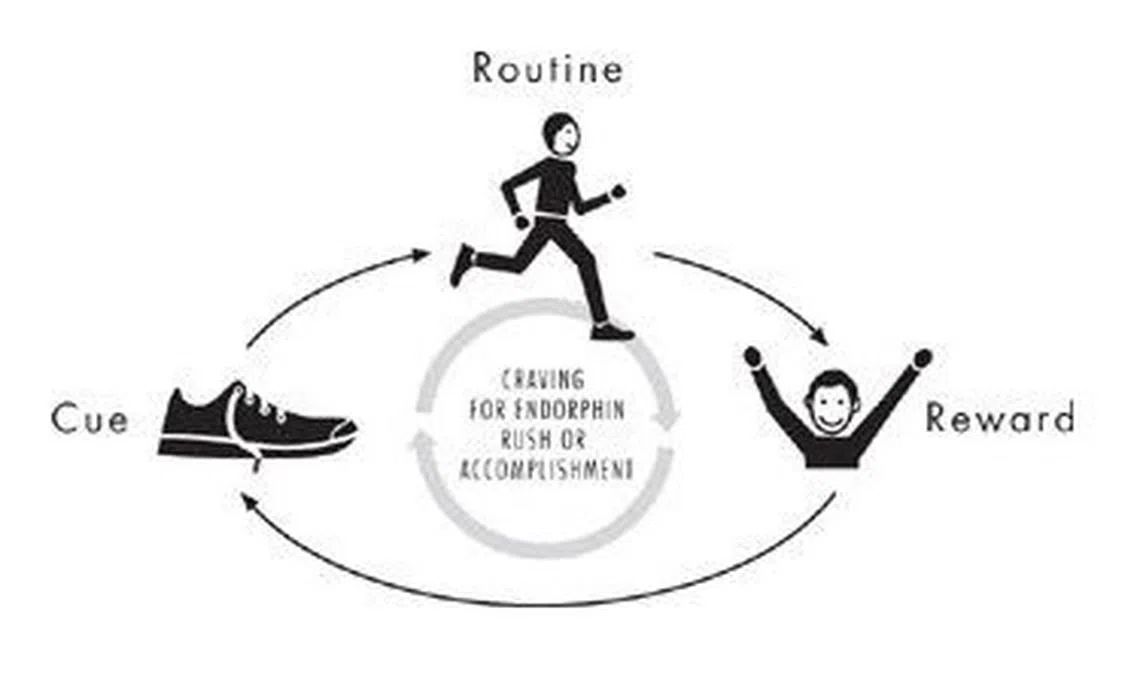 Other writers such as Charles Duhigg and Nir Eyal have also discussed the habit loop. In Duhiggās book The Power of Habit, he stresses that the cue must be made as unmissable as possible for the habit loop to work well. If you want to cultivate the habit of going for a run every morning, a good cue would be to leave oneās running shoes in the middle of the doorway so that it is impossible to miss. The endorphins and the sense of accomplishment after a run becomes the reward that one craves for, reinforcing the virtuous cycle.