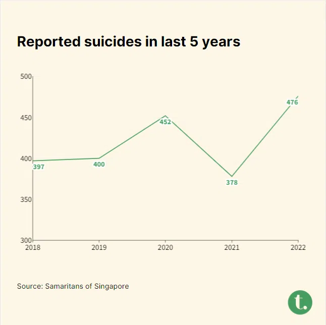 Last year, 476 suicides were reported in Singapore. This was 26 per cent higher than the tally in 2021, with a notable increase among youths and the elderly.