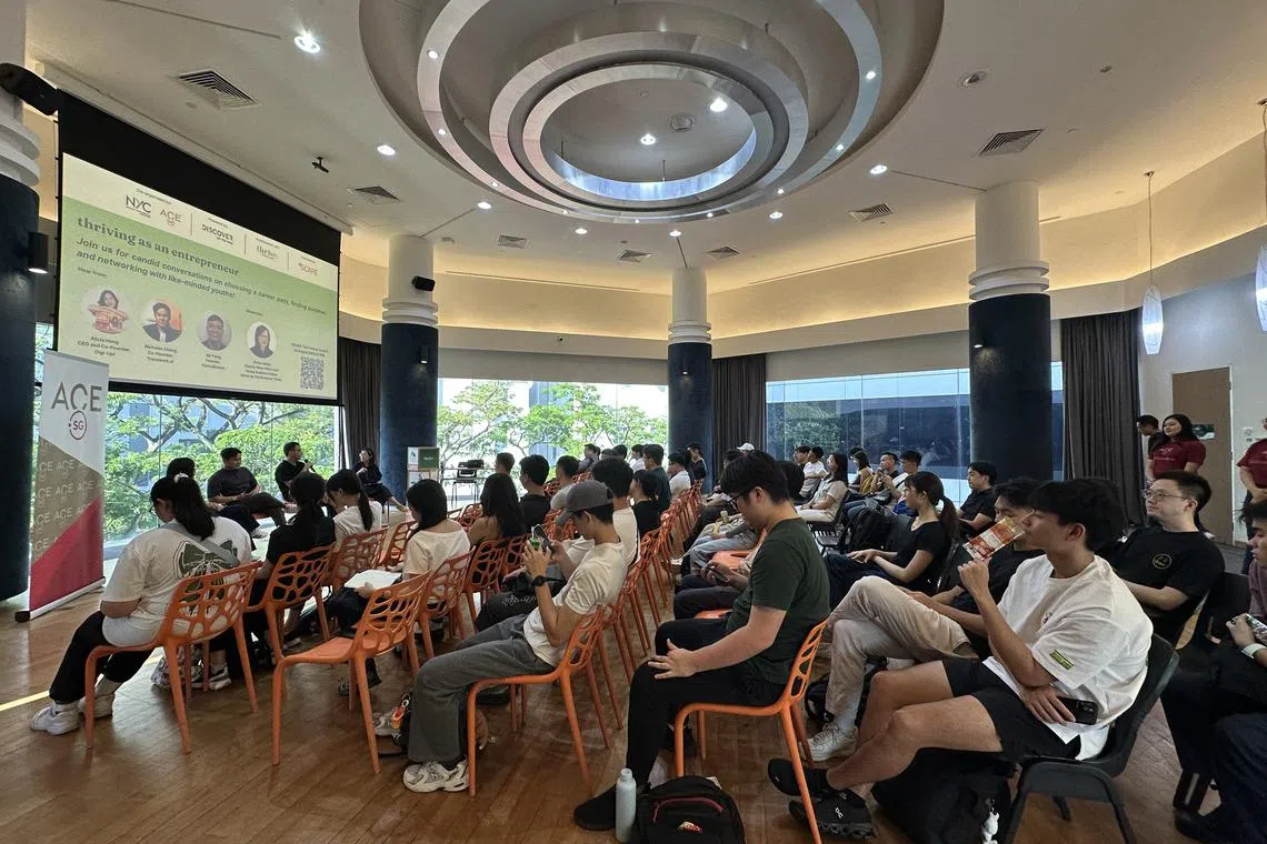 About 50 attendees were at the Thriving as an Entrepreneur fireside chat, held in partnership with thrive, the young audience initiative of The Business Times. The event at *Scape was co-organised by the Action Community for Entrepreneurship (ACE) and the National Youth Council (NYC) Singapore, and included a networking session.