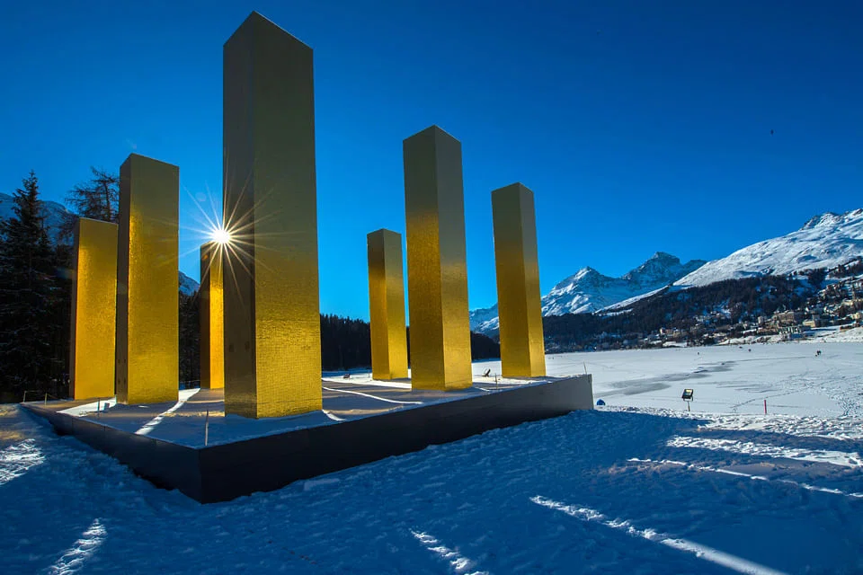 It's becoming a Mecca for the arts, too. This year German artist Heinz Mack brought his breathtaking roaming installation, The Sky Over Nine Columns, to the frozen shore of Lake St Moritz. The opening coincided with the sixth annual art and architecture forum, E.A.T.(Engadin Art Talks) which takes place in nearby Zuoz.
