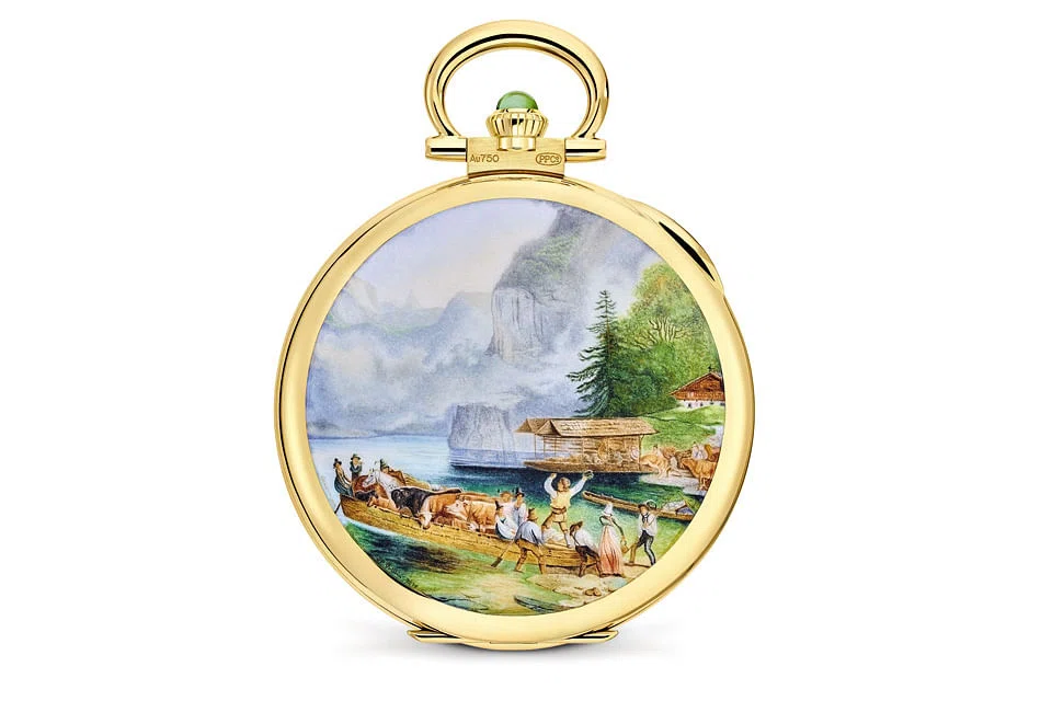 Miniature painting on enamel is also a highly complex art, practised exclusively by an elite of the most gifted artisans. Its magic is unfolded on the backs of pocket watches or on wrist-watch dials with sublime reproductions of a Gauermann painting or the exquisite details of Portuguese azulejos.