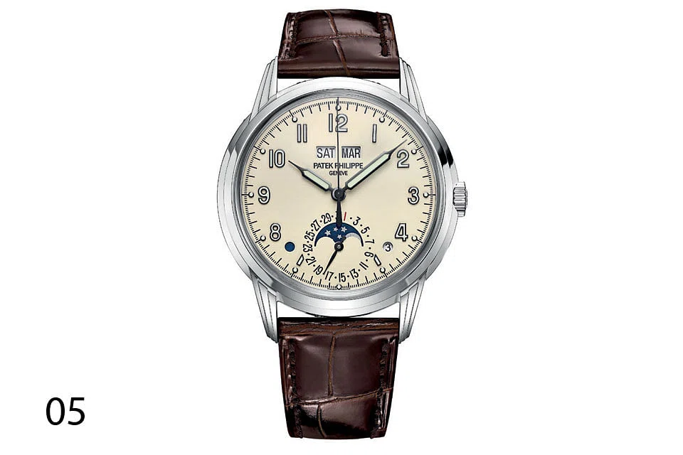 05 A Patek Philippe timepiece is always desirable, more so when it's a perpetual calendar, one which tells not only the hour but also the day, date, month, year and moon phase - and automatically correct for the different lengths of months and leap years. A pioneer in the field, Patek Philippe has been making such wristwatches since 1941. The Reference 5320G (S$109,000), inspired by two 1950s' Patek models, look very much like the vintage Patek perpetual calendars that regularly set new record prices at auctions. Patek's latest perpetual calendar, in a larger modern-sized 40mm white-gold case, seems pricey but it's a steal compared to those prices.