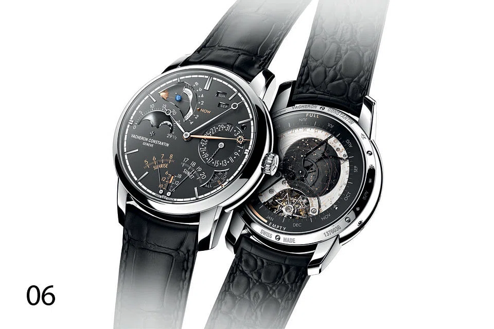 06 Probably the most expensive watch rolled out in 2017, Vacheron Constantin's Celestia Astronomical Grand Complication 3600 costs over US$1 million, one of the very few timepieces launched in the past year priced in that range. Rarer still is the watch itself, which is a one-of-a-kind two-face grand complication that's the most complicated VC wristwatch to date. It packs 23 complications - most relating to astronomy - in a white gold case only 45mm in diameter and 13.6mm thick. The watch displays civil, solar and side real time indications - thanks to an ingenious incorporation of three separate gear trains, one designated to emulate the Earth's rotation around the sun in actual time.