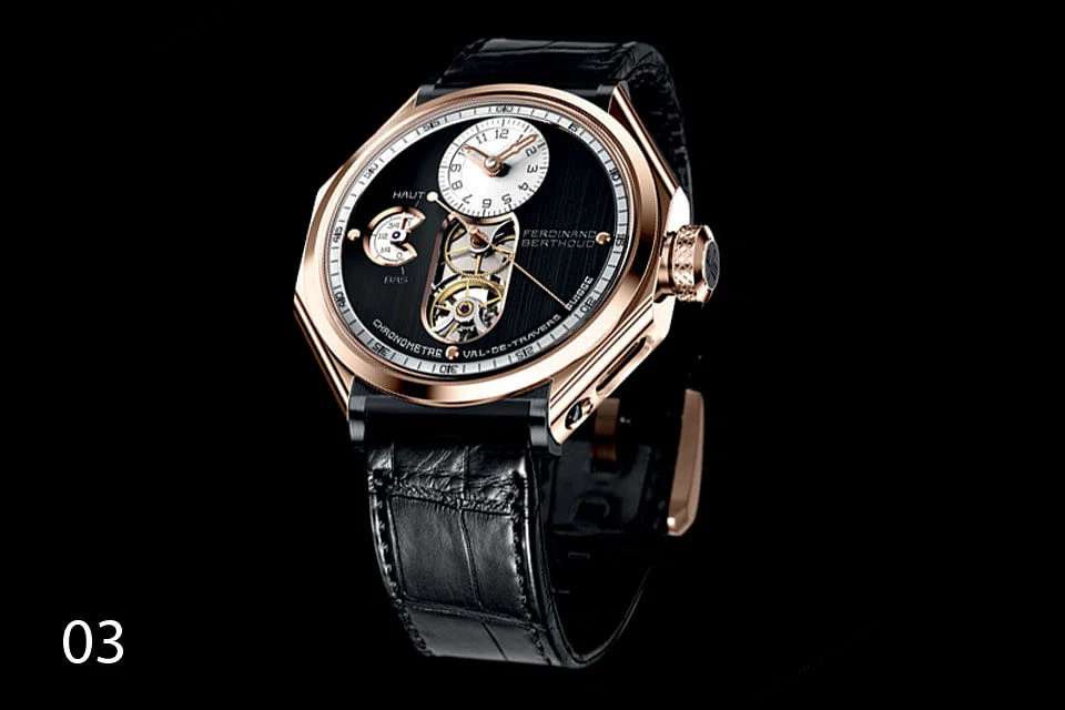 03 The name is not familiar even in the small circle of watch collectors, but Ferdinand Berthoud was a master clockmaker in the 18th century, especially in marine chronometers. Thanks to Chopard's co-president Karl-Friedrich Scheufele, the name has been revived with the creation of the Chronometrie Ferdinand Berthoud FB1 (S$310,000 in white gold case) - a high-precision tourbillon timepiece distinguished by an imposing 44mm octagonal case with watertight portholes, reflecting the inspiration of a Berthoud-made marine clock dated 1777. The watch was the 2016 GPHG grand winner.