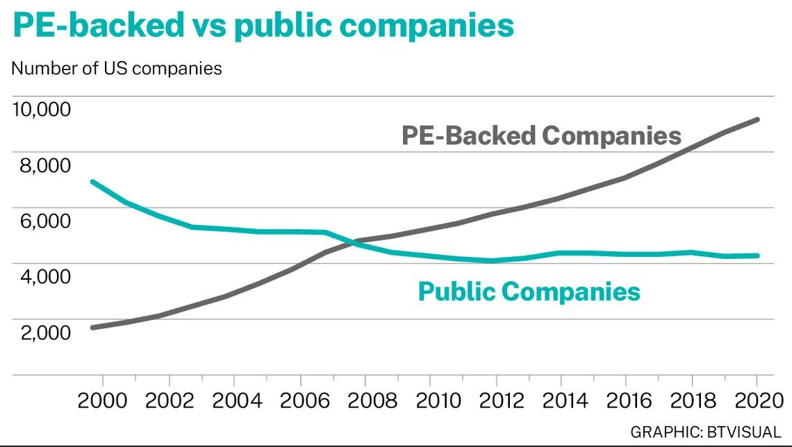 Private equity firms generally take a meaningful ownership share of a company and help add value to the management team, or even directly operate the company to grow its business. This is with a view to exiting after a multi-year investment period that is typically much longer than public market investing.