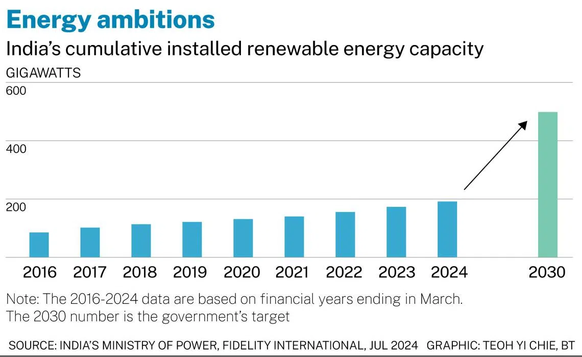 INDIA’S transition to renewable energy still has a very long way to go. Cumulative installed capacity from renewables was only 191 gigawatts as at March of this year, less than two-fifths of the country’s 2030 target.