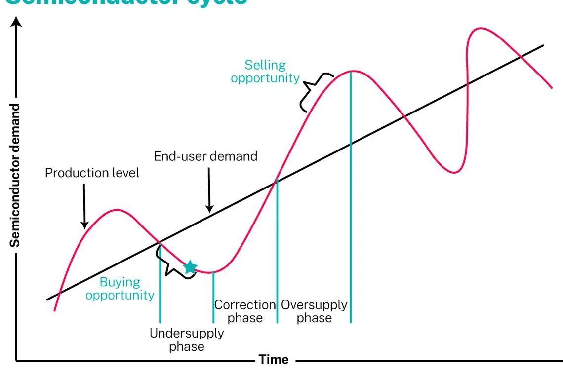 As semiconductors comprise a large part of electronics exports, it is important to examine where it is in its cycle. Generally, a peak-to-trough cycle takes about five to six quarters. As the world is now around 22 months into the current downcycle since peaking in mid-2021, it will likely take another few months before it bottoms out.