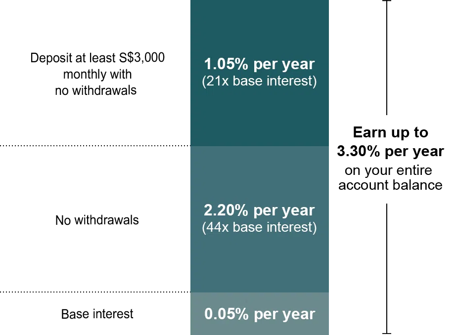 And from now till Sept 30, customers who deposit at least S$5,000 into their OCBC Premier Dividend+ Savings Account can enjoy a higher annual interest rate of 3.45 per cent as long as no withdrawals are made within the month.