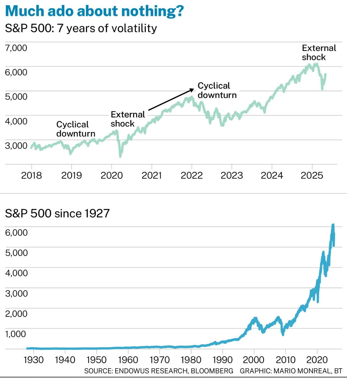 What we now see is another external shock in the form of tariff policies; the market reacted and recovered quickly in a similar vein as in 2020 during the pandemic. Markets are efficient at pricing in bad news quickly, and recovery often starts well before the headlines improve. However, the longer-term consequences of current actions have yet to play out.