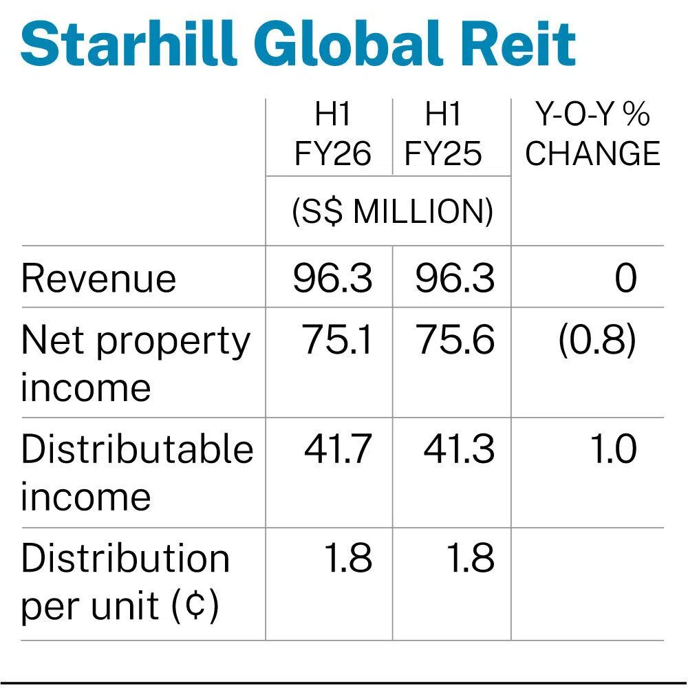 上半年可供派发收入下降0.2%至4320万新元,低于去年同期的4330万新元。