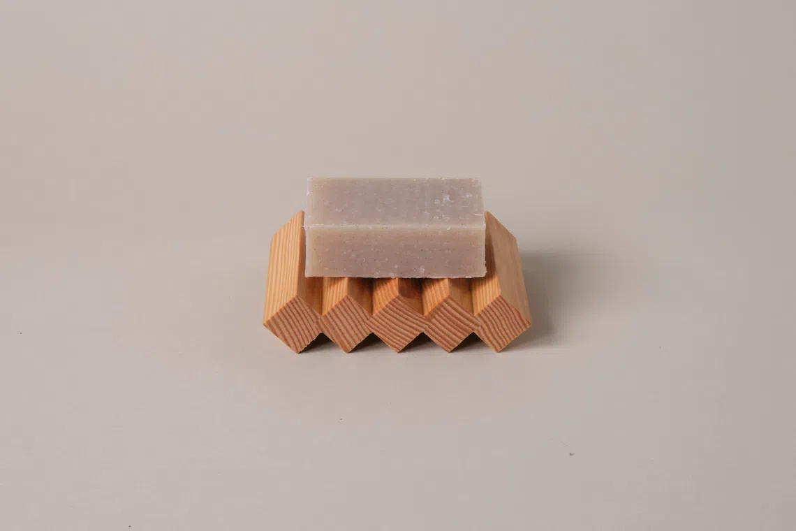 Mentsen 的皂碟由花旗松和染色橡木的边角料制成。每个皂碟的形状都很简单,但其设计能最大限度地减少肥皂与碟面之间的接触,让肥皂在每次使用后都能保持干燥。