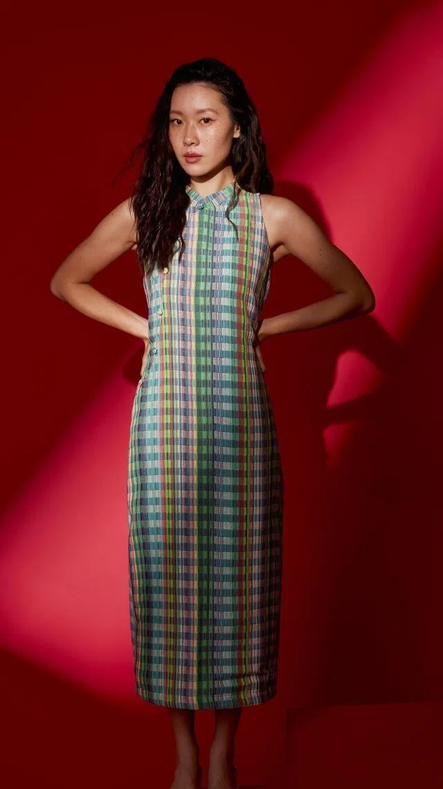“我们想做的其中一件事,就是将旗袍现代化,”Chang 解释道。这意味着用牛仔布代替丝绸,采用多织法花呢和意想不到的剪裁,以及大胆使用霓虹色系。