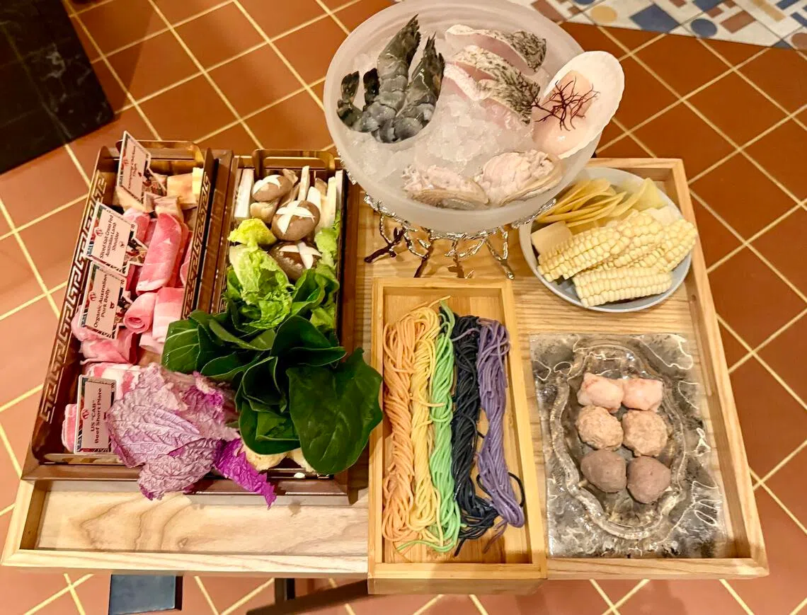 如果你是控制狂,这里也有单点菜单,但选择套餐会更划算;套餐几乎涵盖了所有菜品,份量大到你可能都吃不完。菜品非常丰盛,包括海鲜(虎虾、扇贝和生鲍鱼)、肉类和蔬菜,其中还有非常新鲜的本地种植蘑菇。