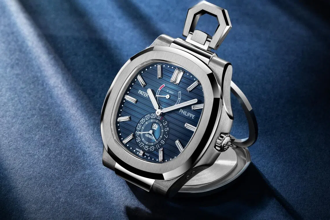 最大的惊喜是Ref 958G,这是一款怀表造型的白金Nautilus座钟,拥有八天动力储备和瞬跳日历,限量仅100座。